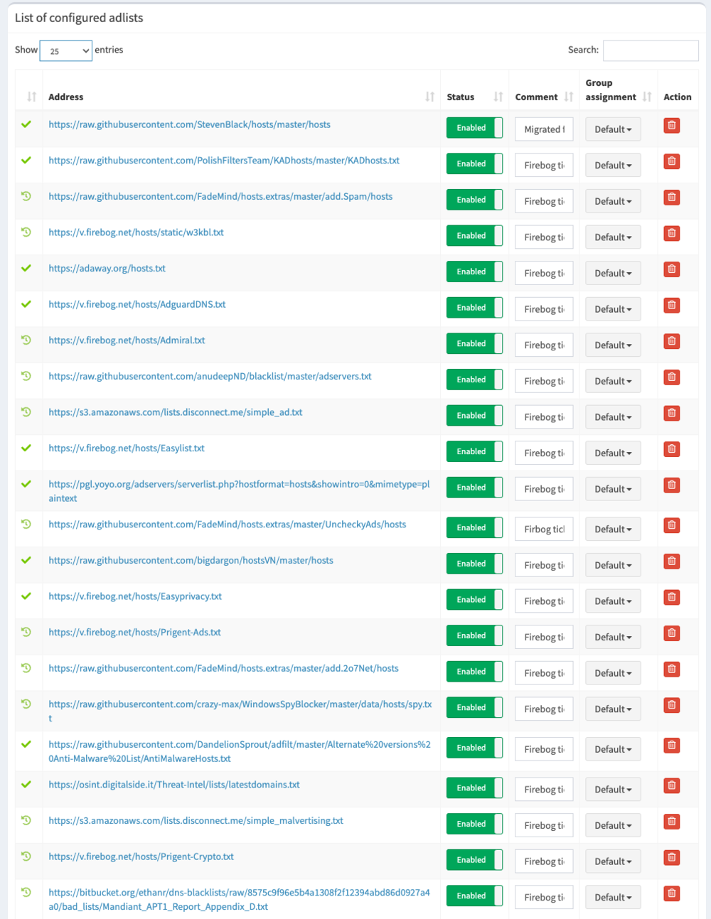Fortunately, several curated and frequently updated lists will cover most of what you want to block without blocking the things you do. There will be exceptions to this based on how many lists you add; you'll have to decide if you need to click that email link or if you find ads in the Amazon app to be valid; if so, use the Pi-hole query log browser and add those exceptions to your allowlist. Those lists with the green checkmark should be the safest way to start.