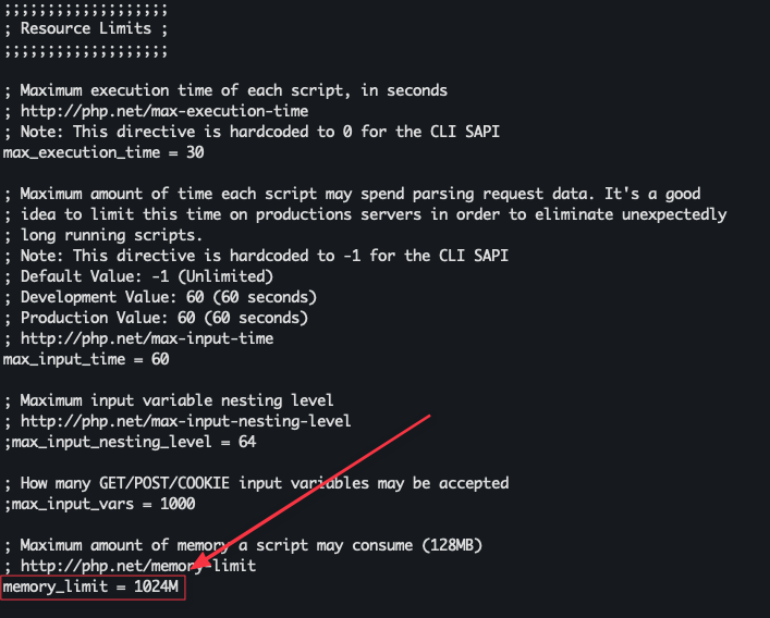 sudo nano /etc/php/7.4/cgi/php.ini; Maximum amount of memory a script may consume (128MB)