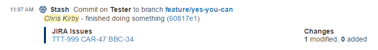 I had a couple of goals with my implementation. 1. I wanted this to look native, e.g. something Slack would implement out of the box. 2. I wanted to pick out my JIRA issue IDs from the commit message and link them back to my JIRA instance.