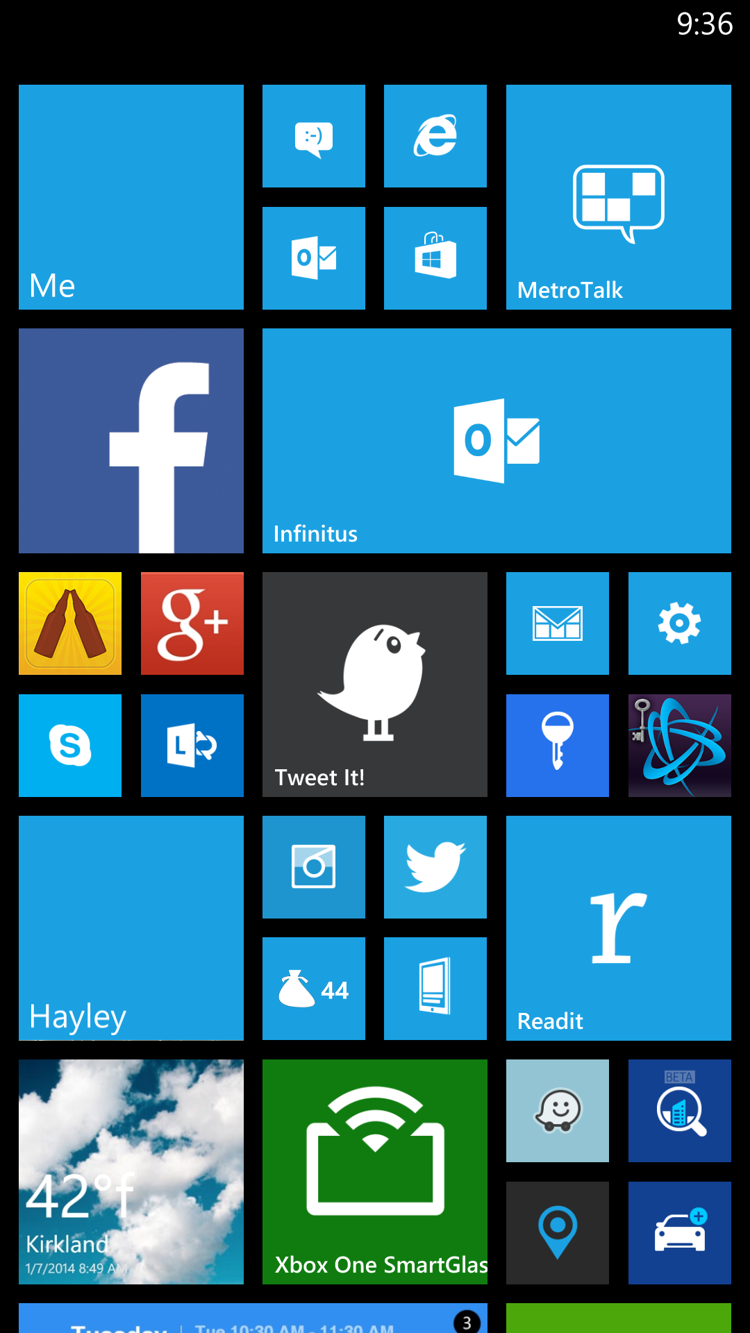 - Smartglass - Essential for the Xbox One and nice to have for the Xbox 360. I use this app every day for everything entertainment related in my living room. The tile sits front and center on my home screen ready to go.