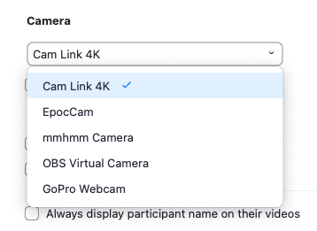 There are some solid and high-quality options with cameras you might already have. Elgato makes an inexpensive app for your iPhone called EPOCCAM that will allow you to use either the front or rear cameras, plus the microphone, as a webcam on your Mac or PC. I actually use this when I want to take my meeting on my desktop away from my desk, but it could be a great stationary option as well if you don't need your phone while working or you have a spare older iPhone. It just needs to be on the same wifi network or connected directly to the computer via lightning to USB. Another option is using your GoPro Hero8|9 as a webcam when connected via USB. GoPro's have great visuals, and all of that comes through their new camera driver for Mac and PC. If this option were there a year ago, I might have just used this as my main camera. You can mount a GoPro anywhere and there are endless accessories. Zoom meeting helmet cam??
