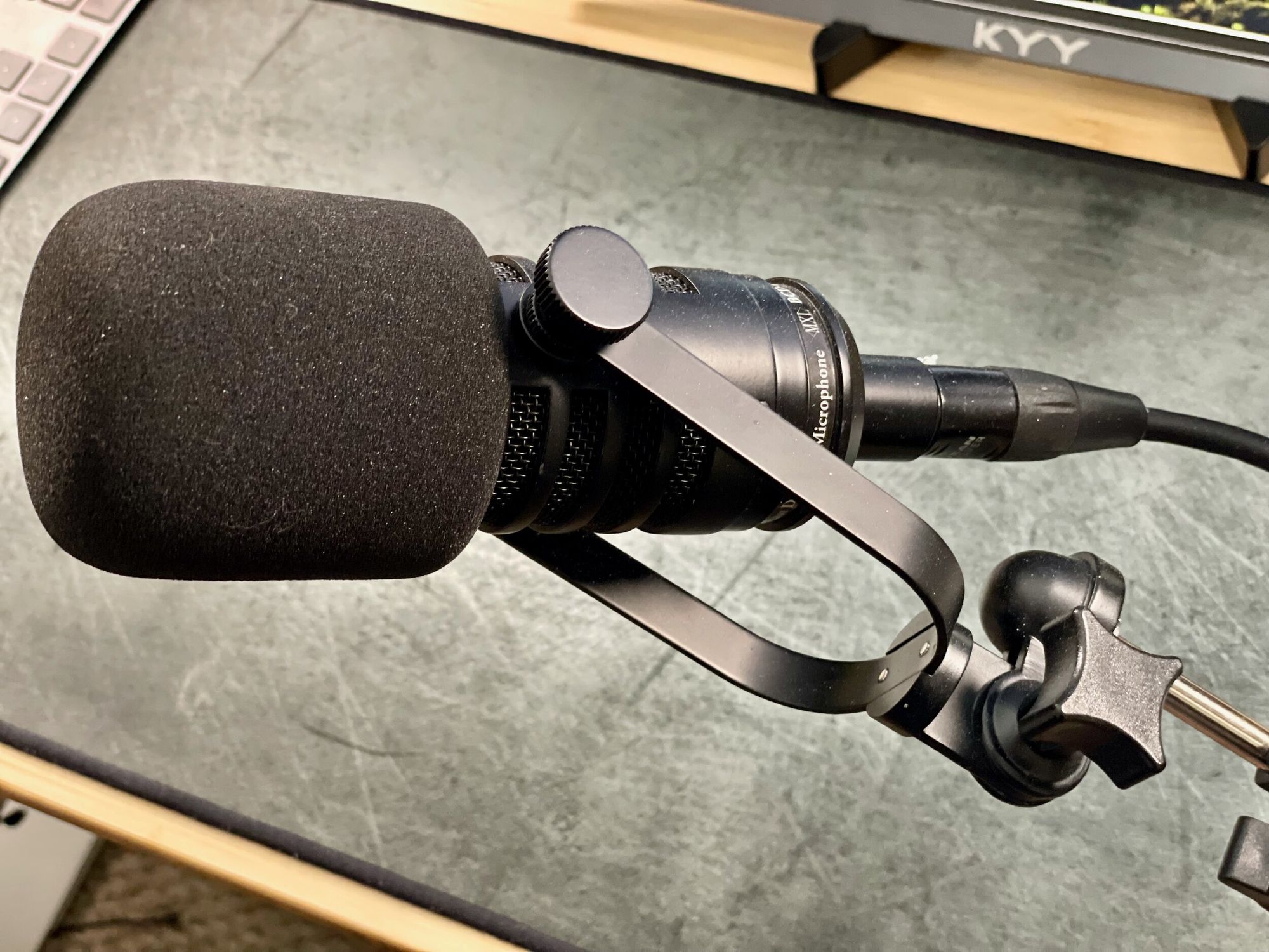 I recommend getting a boom arm if you use a dynamic xlr mic. They like to be close to your mouth and too much gain can start to introduce noise. There are plenty of options here, check out Amazon to find one that fits your desk and works for you. When you want space between you and the mic, you can start to look into quality shotgun mics, which are expensive, or do what I do and switch to a good USB mic. If you are feeling next level here and are happy to spend 1k on a mic, then by all means, pick up a Sennheiser Pro Audio MKH416-P48U3 shotgun mic. I would love one, can't justify that....yet :)
