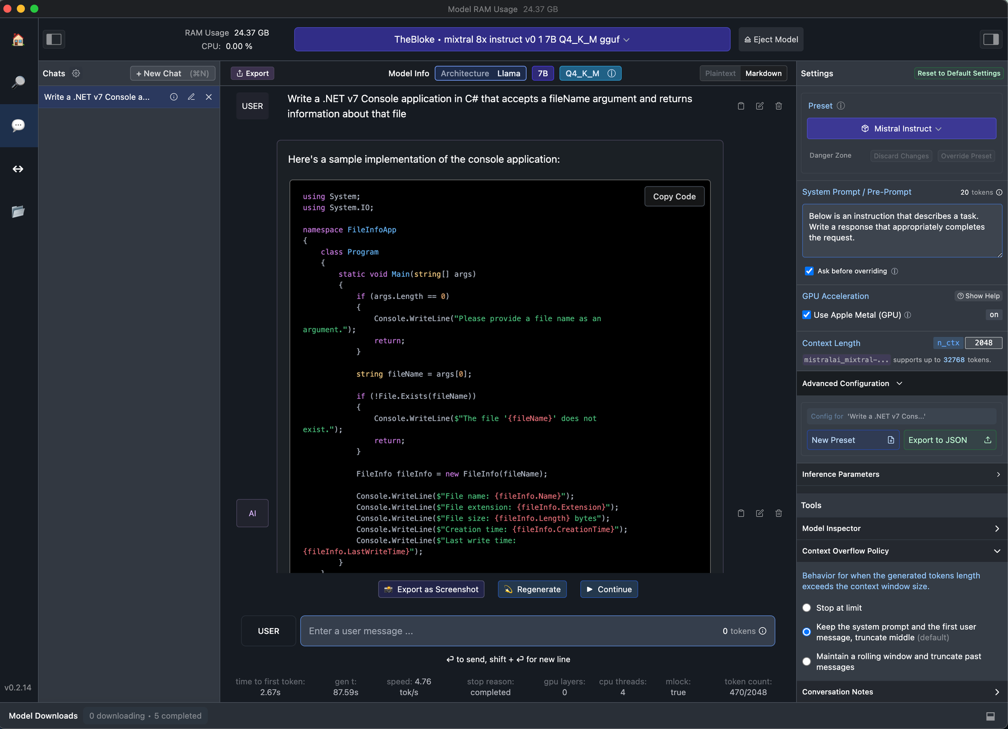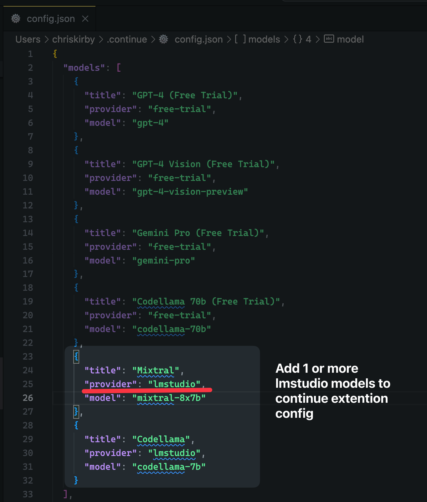 Test each model and find one that produces code to your liking using the AI chat tab in LM Studio before moving on to the next step