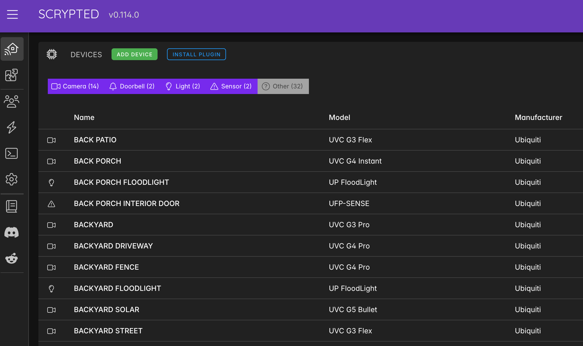 Forget the integrations for Home Assistant and Homebridge for your Unifi, Nest, Ring, etc cameras; this is what you want. Scrypted pulls the RTSPS streams from my cameras, and then rebroadcasts the feeds to Homekit. Once my Protect cameras are integrated with Scrypted via their Unifi plugin (you'll set up a special local login on your console), I simply enable the Homekit plugin on each Camera, and then I can Scan and add the camera like any other Apple Home accessory. This enables things like Apple TV, phone, and watch popups and video notifications from my G4 Doorbell Pro, as if it was all meant to work together. You can even enable recording for people and package detection, as Unifi's AI detection does not natively work with Apple. This project is just awesome. They also have an excellent paid NVR service, which if you're not using a local NVR like me, will give you similar functionality.