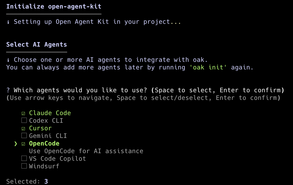 OAK is now running in the background, indexing your code, and listening. The next time you fire up Claude, Cursor, OpenCode, etc, OAK will be there. Now on to the good stuff. Keep reading for a deep dive into what OAK can do today and where it's going in the future.