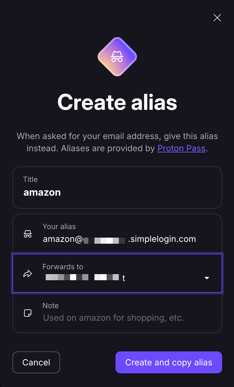 ✅ Create your first alias in the Proton Mail app.